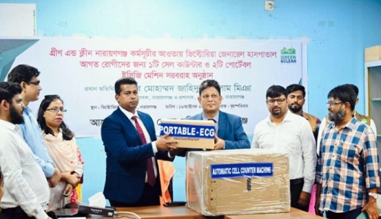 ভিক্টোরিয়া হাসপাতালে অত্যাধুনিক সিবিসি ও পোর্টেবল ইসিজি মেশিন দিলেন ডিসি।