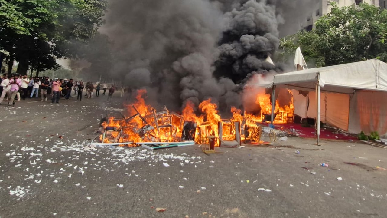 সংসদ ভবনের ফটক টপকে মঞ্চের সামনে অবস্থান জুলাই যোদ্ধাদের