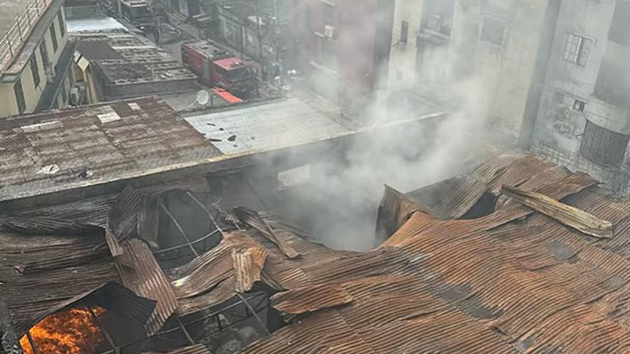 মিরপুরে আগুন লাগা ভবন থেকে নির্গত হচ্ছে ক্লোরিন গ্যাস